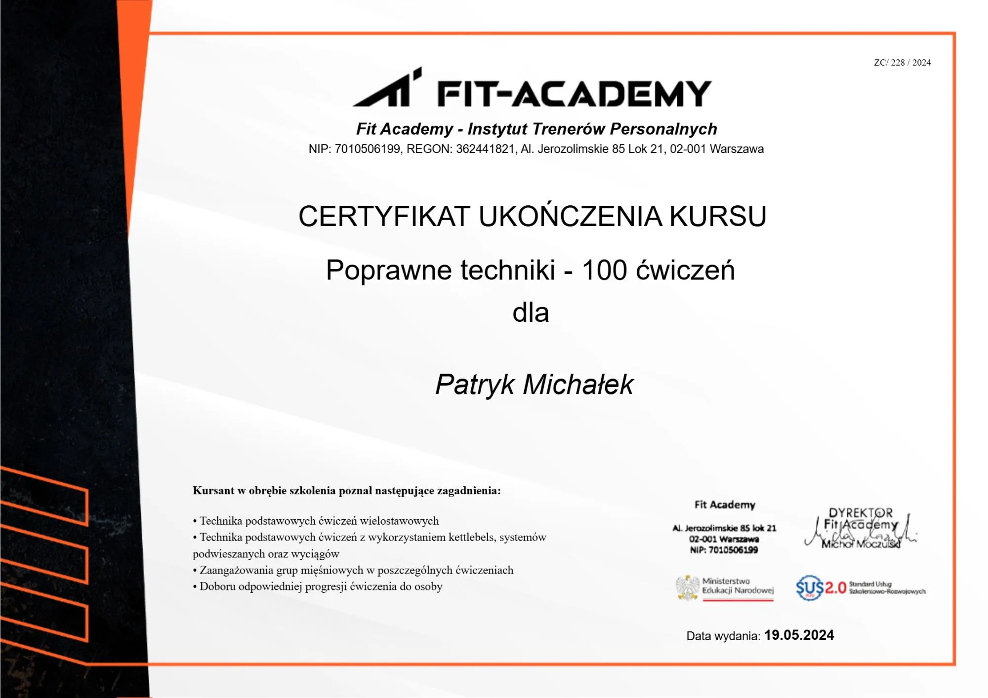 Moje certyfikaty i kursy trenerskie: