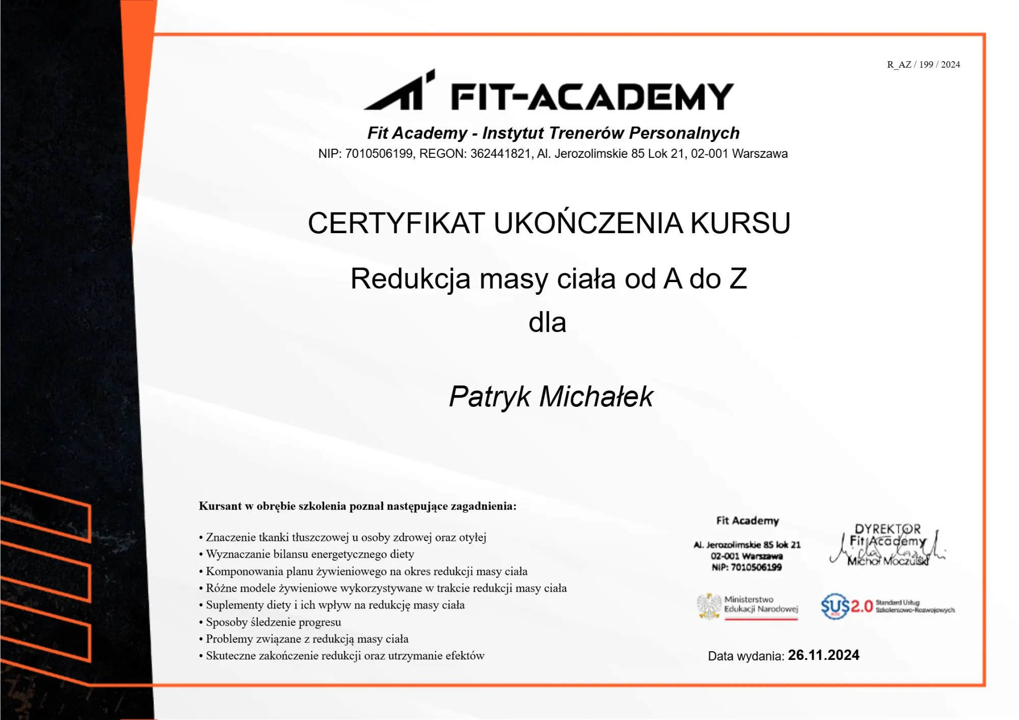 Dziś, jako Trener Personalny, wykorzystuję zarówno praktykę, jak i teorię. W mojej pracy bazuję wyłącznie na potwierdzonych naukowo metodach i unikam podejścia opartego na „tak słyszałem”. Jednocześnie, dzięki własnej historii, doskonale rozumiem, jak ciężkie bywają początki – zwłaszcza w dzisiejszej dobie Internetu, gdzie każda osoba głosi inne, często sprzeczne, opinie.